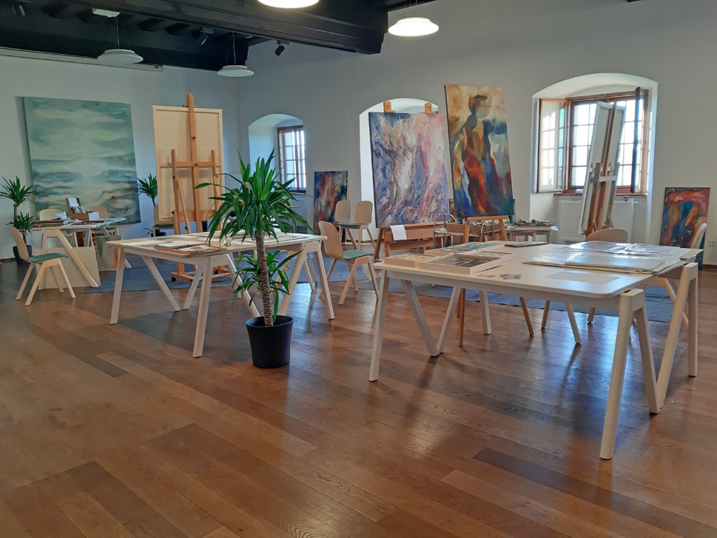 In 2021, I got the opportunity to set up my art studio at an altitude of 850 meters in the 1000-year-old Burg Altpernstein. The castle is located in the Austrian Alps. I was filled with joy and gratitude. Even though I already knew the castle from my childhood and teenage years, I gradually learned more about its history. The castle was first mentioned in documents in 1160 and 1207. It underwent a transformation in the 16th century. The castle chapel is significant as a place of pilgrimage. Additionally, the castle served as an administrative building and a wonderful meeting place for many people and generations.
